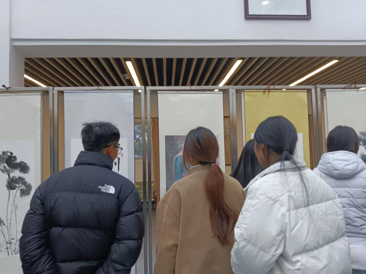 展览现场氛围热烈,师生们驻足观赏、细细品读,在笔墨光影间感受传统艺术的魅力与离退休教职工的精神风采,共同沉浸在这场兼具美感与温度的艺术盛宴中。
