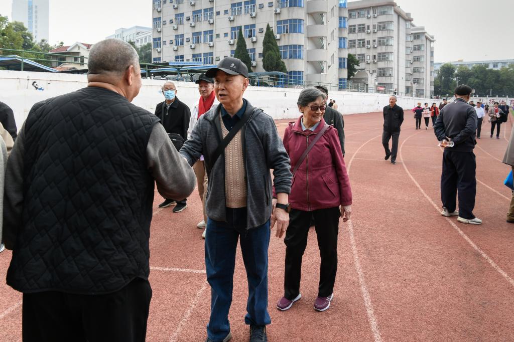 随后,江西理工大学老年人体育协会主席张建中为活动发令。随着一声清脆的“出发”口令响起,数百名老同志精神抖擞、笑容满面,沿着宽敞整洁的田径场跑道有序前行。他们或三五成群,边走边聊,互致问候,分享着退休生活的点滴趣事;或步履轻快,独自享受冬日阳光下的宁静与舒畅。运动场上欢声笑语不断,老朋友们久别重逢的喜悦之情溢于言表,构成了一幅生动和谐的“银龄康乐图”。