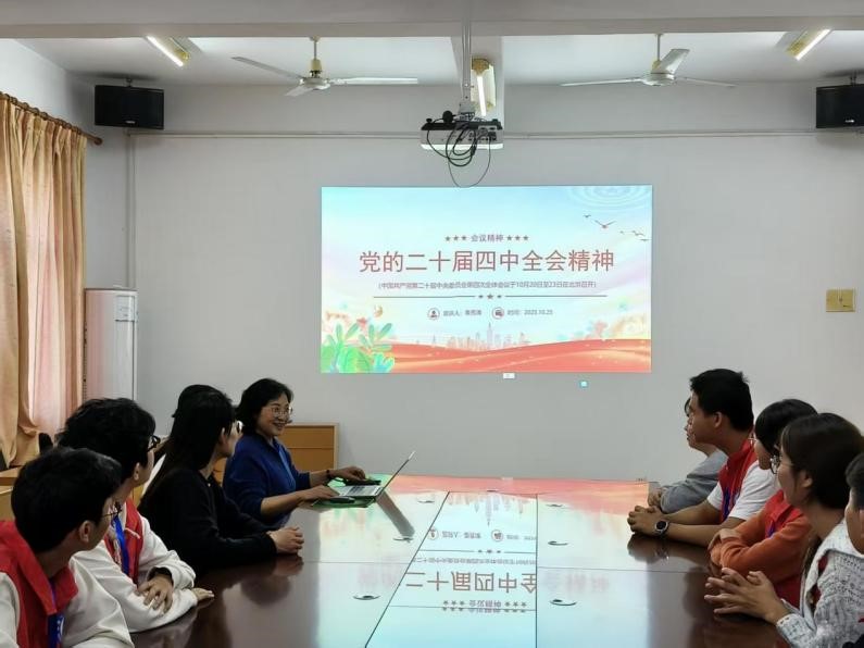 秦秀清老师详细解读了党的二十届四中全会的重要内容和精神内涵,引导学生们深刻理解全会的重大意义。学生们认真听讲,积极互动,现场气氛热烈。